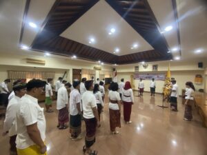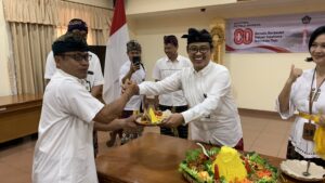 Jakarta, 14 Agustus 2025. Upacara peringatan Hari Jadi Provinsi Bali ke-67 di Badan Penghubung Provinsi Bali berlangsung khidmat di Aula Kantor, Kamis, 14 Agustus 2025. Kepala Badan Pemprov Bali Bapak Arifin Effendi ST, MT bertindak selaku inspektur Upacara. Dalam sambutannya, dibacakan amanat Gubernur Bali yang menekankan pentingnya menjaga dan melestarikan budaya Bali sebagai identitas utama, sekaligus mendorong inovasi dan sinergi untuk membangun Bali yang lebih maju dan sejahtera. Acara kemudian dirangkaikan dengan pemotongan tumpeng secara simbolis , dilanjutkan dengan pengunguman pemenang lomba serta pembagian hadiah bagi kelompok pemenang.